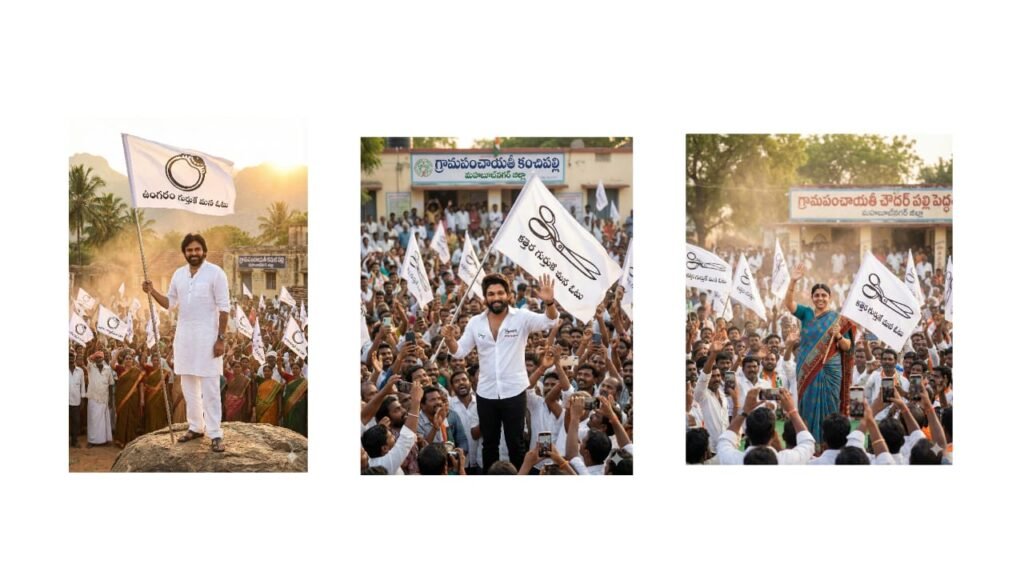 PROMPT 1 “A create uploaded image realistic, high-resolution photo of a same dress Indian political standing in the middle of …